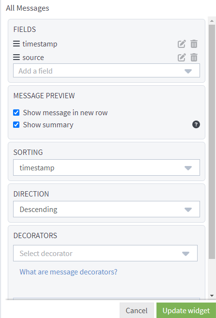 By default, message summaries will be displayed from any search view with a messages widget. To control whether or not summaries are displayed: