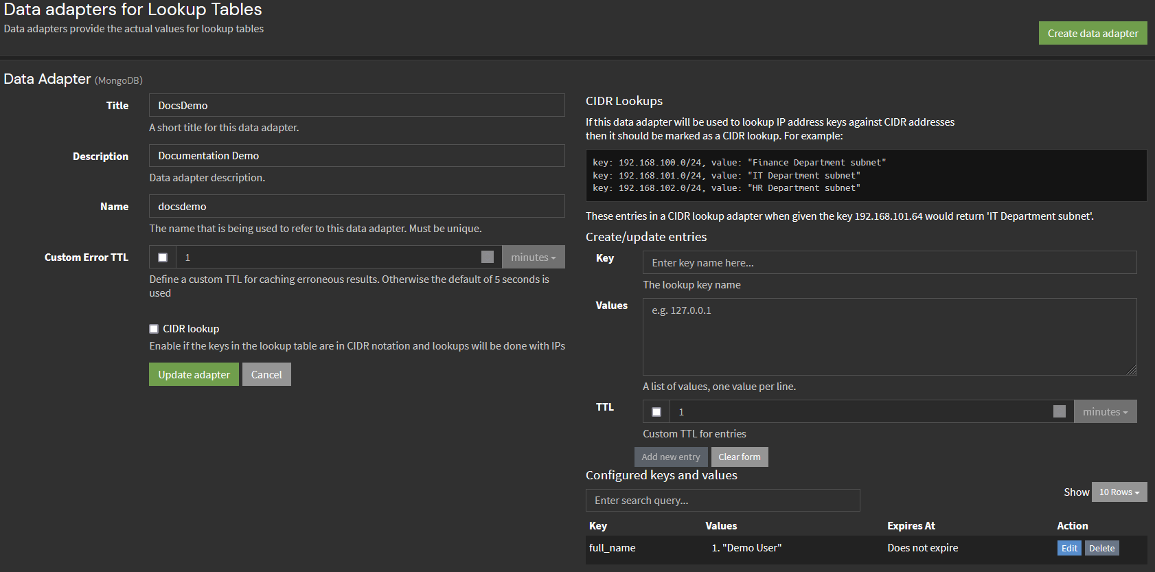 CIDR Lookup in MongoDB Data Adapters