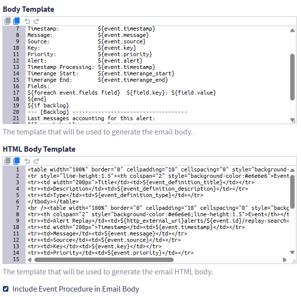 (Optional) Customize the Body Template and HTML Body Template fields if you want to format or extend the email contents.
