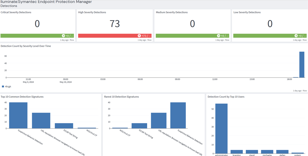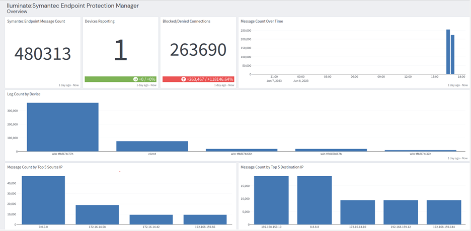 Introduced in Illuminate 3.4 the Symantec Endpoint Spotlight Content Pack comes bundled with the Symantec Endpoint Security Content Pack. See Installing Illuminate or Upgrading Illuminate for more information on Spotlight Content Pack selection. This additional pack contains the following dashboards: